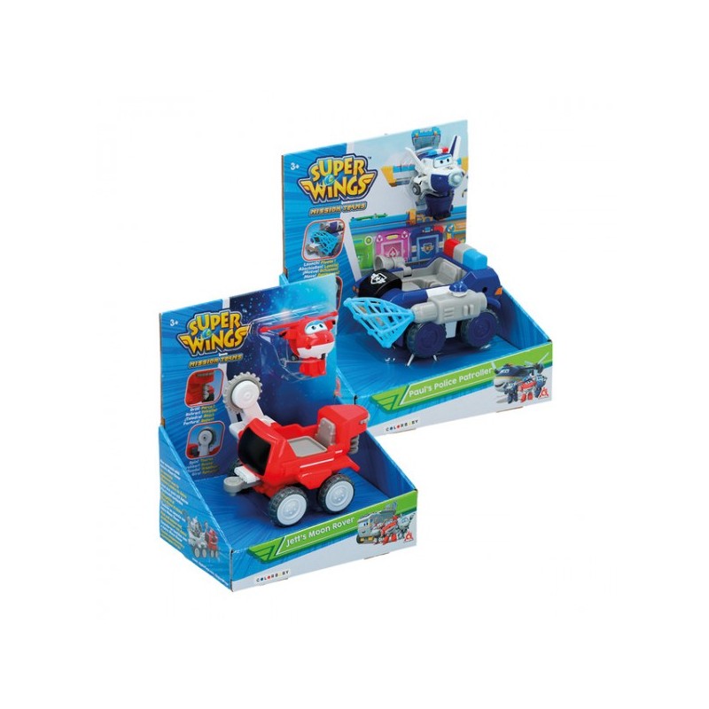 Acompaña a Jett y a Astra en sus misiones por el espacio con los nuevos juguetes Super Wings Mision Teams de la 3ª temporada de la serie. Las figuras de Jett y Astra se transforman de avión a robot en pocos pasos. Cada uno de ellos vienen con un vehículo espacial Rover con diferentes herramientas y además... ¡Los puedes conectar entre sí! Estos juguetes se recomiendan a partir de 3 años