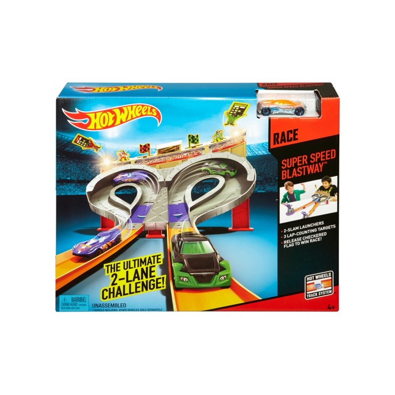 HW- Carrera Explosiva. ¿Estás listo para ganar? Con esta pista podrás competir con un amigo, ¡será el vencedor aquél que tire las figuras a mayor velocidad! ¡Ve correr a tus autos como nunca antes y demuestra por qué eres el mejor! Puede conectarse con otros playsets y pistas.