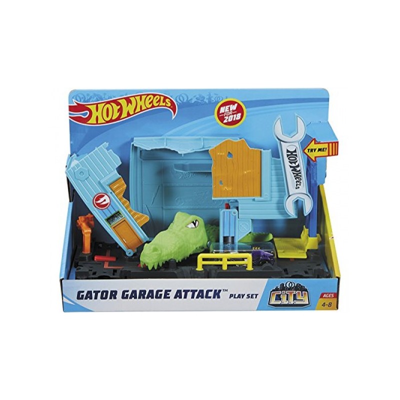 ¡Hot Wheels City está siendo tomada por criaturas! Usa tus coches Hot Wheels para ponerte en forma y luchar entre estos sets temáticos para salvar a Hot Wheels City. Luche contra el cocodrilo que se esconde en el garaje Gator, derrote al murciélago que se esconde en la casa abandonada y no se deje atrapar por la columpiosa araña del parque. Cada conjunto se conecta directamente a otros juegos de Hot Wheels City con nuestro nuevo sistema de conexión, que aún es compatible con su pista naranja. Diseñado para inspirar la narración y la creatividad para niños de 3 a 6 años.