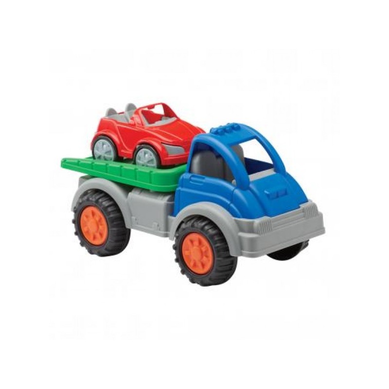 Carro Gigante - American Plastic ¡Los autos serán llevados directamente a la diversión con este gigantesco transportista de autos! Cuenta con una cama basculante, un automóvil separado y ruedas grandes. Código: 94907990