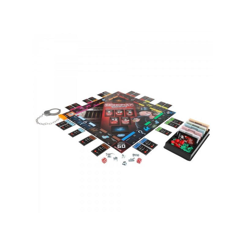 Haz de este Monopoly distinto tu juego favorito para pasar noches enteras jugando o llevar contigo a reuniones divertidas. Inspírate en esos momentos Monopoly icónicos (y tácitos) en los que se tuercen reglas, se pide prestado dinero, y se admiten los negocios turbios. Encuentra extravagantes sugerencias en el tablero, las tarjetas y las reglas que alientan a los jugadores a mostrar al tramposo que llevan dentro y que lo quiere adueñarse de todo. Acomoda el dado, roba billetes del banco... ¡no pagues la renta! Haz trampa y obtén una recompensa, pero si tu trampa falla, ¡pagarás las consecuencias! Esta edición no tiene casas... solo hoteles. Las esposas de juguete pueden dejar jugadores "encadenados" al tablero.