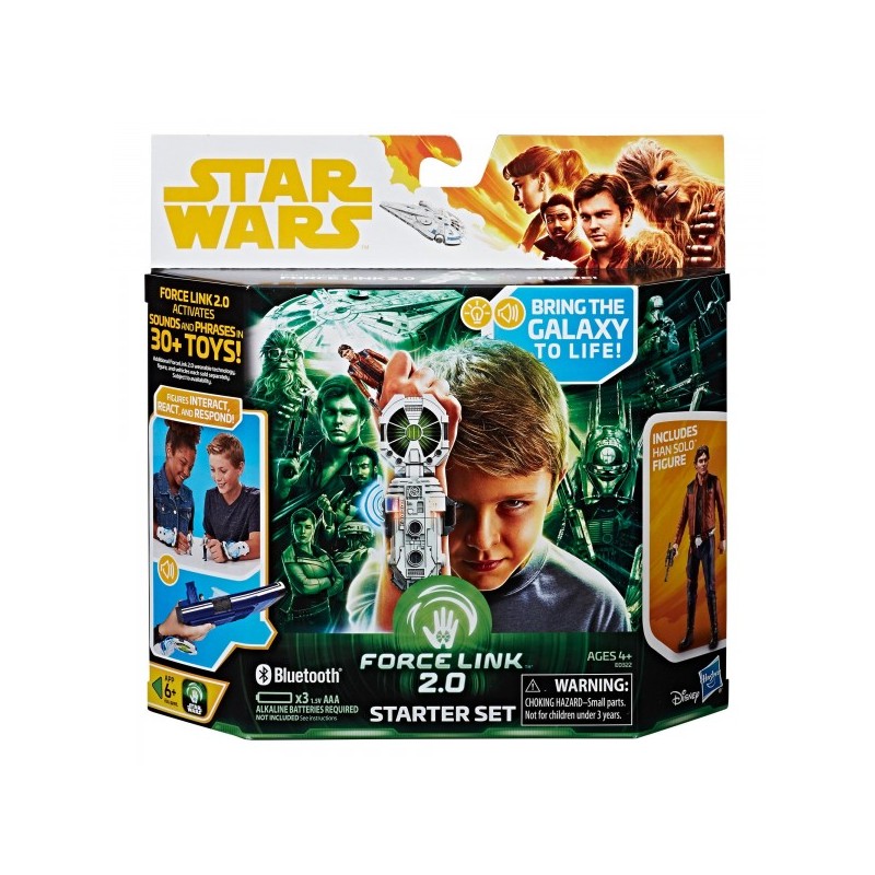 • El Kit de inicio Force Link 2.0 incluye brazalete Force Link, compatible con todos los productos Force Link 2.0 (se venden por separado) y la figura incluida de Han Solo de 9,5 cm.