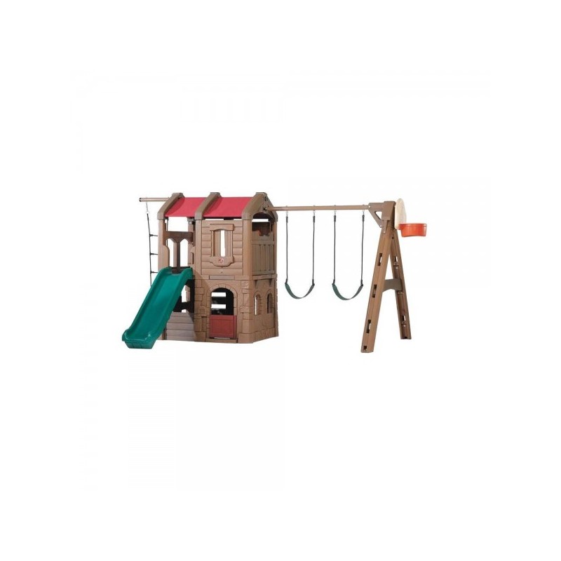La casa de juego es de dos pisos y se puede escalar por vías distintas, por su escalera integrada, por su escalera de cuerda o su muralla de escalar. En forma adicional sirve de escondite!