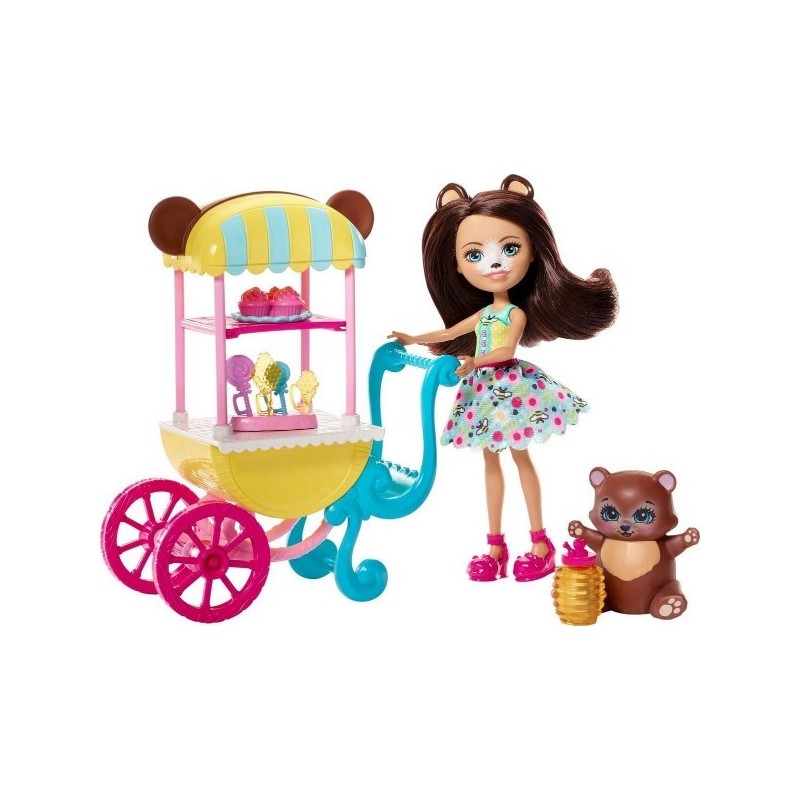 Enchantimals Carro de Postres ¡Deja que las adorables muñecas Enchantimals y sus amigos animales te encanten! Juega divertidas historias con estos juegos de temática diferente. Cada juego viene con una muñeca de 6 pulgadas y un amigo animal, un accesorio grande y un recuento de piezas temáticas. Incluye una muñeca Enchantimals que lleva moda y accesorios y un amigo animal. Código: 53267148